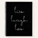 Viva el amor de risa, palabras inspiradoras para este cuaderno minimalista.