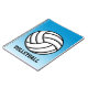 Cute black and white cartoon volleyball ball on a blue gradient background and a customizable text area that now reads "volleyball".