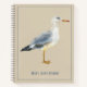 This coastal inspired spiral notebook features a beautiful watercolor seagull in soft shades of blue and grey on a background of sand beige. Personalize with your choice of name or special text.
