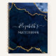 Moderno y elegante novela acuarela azul y oro de mármol agate Geode Sketchbook personalizada con su nombre en escritura de moda.