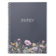 Un cuaderno sencillo y elegante con un fondo gris oscuro y un borde de flores silvestres de bonito en la parte inferior del cuaderno. La tipografía en blanco roto simplemente dice "Notas", pero puedes personalizar esto para adaptarla a tus necesidades.