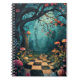This captivating illustration invites you into a dreamlike forest with a checkered path winding through towering trees, glowing mushrooms, and vibrant flowers. Evoking the essence of Alice in Wonderland, this magical scene is a perfect design for lovers of fantasy, fairytales, and whimsical adventures.