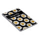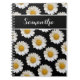 Un patrón de margaritas blancas sobre fondo negro con una plantilla para el nombre.