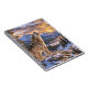 This design features a majestic gray wolf standing on a snow covered ridge while lifting its head in a powerful howl toward the glowing evening sky. Warm sunset light spreads across the landscape, illuminating the wolf’s thick gray and cream fur and casting golden tones over the snowy terrain. In the distance, rugged mountain peaks rise above a valley of evergreen pine trees while dramatic clouds reflect the colors of the setting sun. The scene blends cool alpine blues with warm sunset golds, creating a striking wilderness atmosphere. This realistic wildlife landscape captures the beauty of a howling wolf in a peaceful mountain setting at sunset.