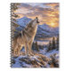 Cuaderno Wildlife Howling Gray Wolf Mountain Sunset Scene