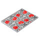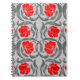 Notebook in a vintage William Morris textile pattern of stylized pimpernel flowers and leaves - flowers in a gradient of dark to bright red, with graphite gray / grey leaves, on a light silver gray background