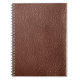 Un cuaderno de espiral fresco con una foto de cierre de cuero marrón usado.