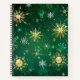 Cuaderno Xmas copos de nieve dorados sobre fondo verde
