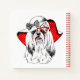 Este diseño presenta un yorkie lindo en un gorra de sol rojo de verano con un arco y lentes rojos.