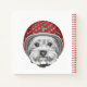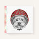 Este diseño presenta un retrato de un Terrier de Yorkshire con un casco de polka verde azulado y rojo punteado.