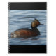 Cuaderno del Zampullín de Orejas. El ojo rojo brillante del zampullín de orejas negras se puede ver desde bastante distancia. Se alimentan buceando hasta el fondo de lagos y estanques para cazar pequeños peces, insectos acuáticos, caracoles y similares.