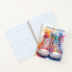 Cuaderno personalizado con vibrantes zapatillas de agua con cordones en un fondo blanco, impreso en ambas cubiertas. ¡Genial para niños de todas las edades! Elija el color de la encuadernación espiral y seleccione entre papel de dibujo, líneas o cuadros, perfecto para la escuela, el diario o notas creativas.