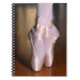 Fotografía de un ballet apuntando zapatos en un suelo de madera.
