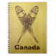 Un par de raquetas cruzadas sobre un fondo de cuero de cerebro. También aparece un texto de personalizable que dice "Canadá". Hay varios estilos diferentes de raquetas de nieve tradicionales. Los que aparecen aquí son de Ash y moosehide babiche (webbing) en el patrón de Alaska. Las raquetas de nieve de Alaska, más largas y más delgadas que otros estilos, como el pepino, permiten una puerta más natural y son perfectas para los viajes de travesía. Las puntas ligeramente volteadas te permiten arrastrar un poco los pies. Se aconseja llevar raquetas de nieve para los excelentes cielos; generalmente en el peor momento posible.