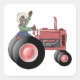 Cuadrada Agricultor Montando Un Pegatina De Tractor Square