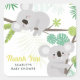 DIVERTIDA, festiva y colorida ducha de bebé gracias pegatina que presenta bonitos ilustraciones de koalas, philodendrón de hojas divididas, hojas de plátano y hojas de palma. Este pegatina tropical de agradecimiento es perfecto para el verano, eventos de temática oceánica y lujos.