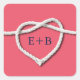 Una cuerda de vela blanca atada en el corazón decora este pegatina monogramado sobre un fondo de coral, ideal para los bodas náuticos o de playa. Desplácese hacia abajo para ver el resto de la colección de bodas, y si se necesitan elementos adicionales, póngase en contacto con nosotros en prettyfancyinvites@gmail.com con su solicitud.