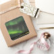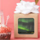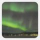 Pegatina con rayos verdes de aurora boreal (luces del norte) en el cielo nocturno sobre un lago helado en Laponia.