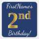 Este sencillo diseño pegatina de cumpleaños incluye un mensaje como "¡Segundo cumpleaños de FirstName!", con el "segundo" con un aspecto de color falso/imitación de inspiración dorada, en un fondo de color azul. El nombre se puede personalizar. Pegatinas como estos podrían ser tal vez un regalo para alguien que esté celebrando su segundo cumpleaños, o tal vez podrían ser usados como decoraciones en una fiesta de cumpleaños. [~Z0000248]