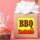 Una etiqueta de enlatado personalizado para salsas calientes, rizos, salsa u otras recetas calientes que se inflaman con arte gráfico de llamas rojas y naranjas al final del diseño y las letras BBQ. Haga clic en Personalizar para agregar su nombre o mensaje