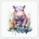 Pegatina de arte animal Cute Baby Hippo Safari, decorado en coloridos colores del agua. Arte neutral en materia de género.