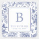 Cuadrada Blue Floral Chinoiserie Pegatina Boda inicial