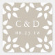 Selle sus sobres de invitación a la boda, favores y más con nuestros elegantes pegatinas marroquíes inspirados en el fresco champán beige y blanco. El diseño cuadrado redondeado incluye sus iniciales y fecha boda rodeadas por un borde geométrico en blanco sobre un fondo de arena suave y color canela. Coordina con nuestra colección de invitaciones a bodas árabes en Champagne.