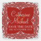 Cuadrada Boda Silver+Red Lace Save the Date Pegatina