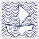 Un pegatina cuadrado con un bote con un patrón de olas japonés. Personalizar al pegatina con su nombre o su propio texto.