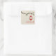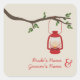 Un pegatina boda al aire libre con un tema de naturaleza salvaje/camping con el ilustracion de una lámpara de aceite roja colgando de una rama de árbol con hojas verdes. Personalice el texto con sus nombres.
