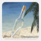Pegatina cuadrado para hacer coincidir nuestra invitación "Castaway Fiesta 1" con una imagen de un mensaje en una botella en una playa de arena blanca y frondas de palmeras. Vea la combinación de invitación, confeti, bolso de favor, etiqueta de favor, etiqueta, imán de guardar cuadrado la fecha y papel de envoltura. Ver toda la colección de Pegatinas de Shipwreck en INVITES | Sección Pegatinas y etiquetas.