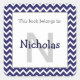 Cuadrada Chevron Monograma Bookplate Pegatina azul marino
