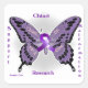 Un pegatina cuadrado con el Chiari puesto para una cura y un logo de la mariposa para apoyar la toma de conciencia por la malformación de Chiari.