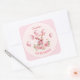 Cuadrada Chica de la Granja Rosa Cute Piggy Primer Pegatina