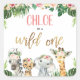 Cuadrada Chica Safari Wild One Birthday Pegatina