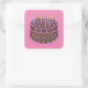 Cuadrada Chicas de pastel de cumpleaños rosado pegatina fie