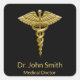 Cuadrada Clásico Caducto de Oro Médico en Negro - Pegatina