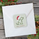Difunde alegría por las vacaciones con este pegatina festivo. Un contorno verde de un perro, con un sombrero de Santa. Es perfecto para regalos de vacaciones, tarjetas y sobres. Sellarlos con este diseño sencillo pero elegante para los amantes de los perros vacacionales. El clásico pegatina cuadrado incluye "Felices Fiestas" en rojo, pero lo personaliza para hacerlo propio.