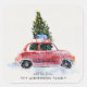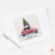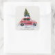 Cuadrada Coordenando pegatina navideña - Coche rojo vintage