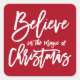 Una elección perfecta para los saludos de vacaciones de sus Navidades a sus amigos y familia, un diseño pegatina de vacaciones bellamente sencillo con las palabras "Creer en la magia de los Navidades" escritas en un moderno guion blanco con letras a mano en un fondo rojo. Diseño de ELKE CLARKE© Disponible exclusivamente en www.zazzle.com/monogramgallery*.