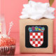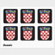 Escudo de Croacia. El escudo de armas de Croacia consiste en un escudo principal y cinco escudos más pequeños que forman una corona sobre el escudo principal. El escudo principal de armas es un tablero de ajedrez (chequy) que consta de 13 campos rojos y 12 plateados (blancos). Se le conoce comúnmente como šahovnica ("tablero de ajedrez", de šah, "ajedrez" en croata) o grb (literalmente escudo de armas). Los cinco escudos más pequeños representan cinco regiones históricas diferentes dentro de Croacia.