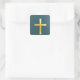 Cuadrada Cruz dorada en Pegatina de fondo azul