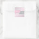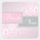 Cuadrada Damasco rosa y gris Gracias Pegatina