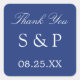 Dark Blue Wedding Favor Gracias Pegatina, por favor personaliza con las iniciales de la pareja y la fecha del boda, usando la plantilla de personalización en línea antes de pedir.