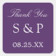 Dark Purple Wedding Favor Gracias Pegatina, por favor personaliza con las iniciales de la pareja y la fecha del boda, usando la plantilla de personalización en línea antes de pedir.