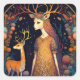 Cuadrada Deer Lady Fantasy Art Square Pegatina