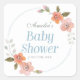 Cuadrada Delicado Pegatina Floral Blue Baby Shower Square
