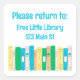 Estos lindos pegatinas cuentan con una hilera de libros y la frase "Por favor regrese a" escrita en azul en un divertido tipo de letra. Excelente como placas de biblioteca, para la biblioteca de su barrio o para una biblioteca de préstamos comunitarios.