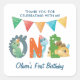 Cuadrada Dinosaurio Primer Cumpleaños Gracias Pegatina Cuad