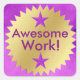 ¡pegatinas que están reservados para el más impresionante de los increíbles trabajos estudiantiles! Estos exquisitos pegatinas cuentan con un fondo de color púrpura y un "sello de aprobación dorado" especial para el trabajo estudiantil distinguidamente impresionante. Perfecto para reconocer el trabajo excepcional de los estudiantes, el logro de objetivos, el trabajo/esfuerzo mejorado o el comportamiento excelente.
